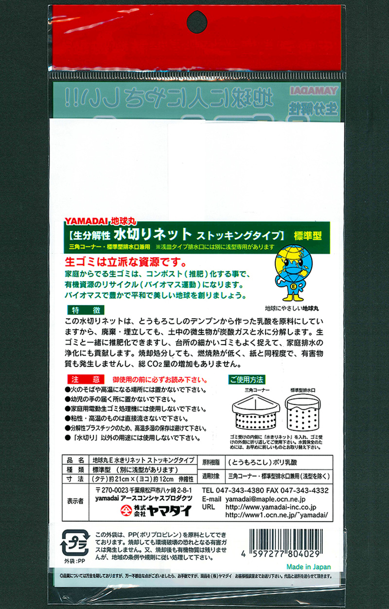 | 品名 | 地球丸 生分解性 水切りネット(ストッキングタイプ) |